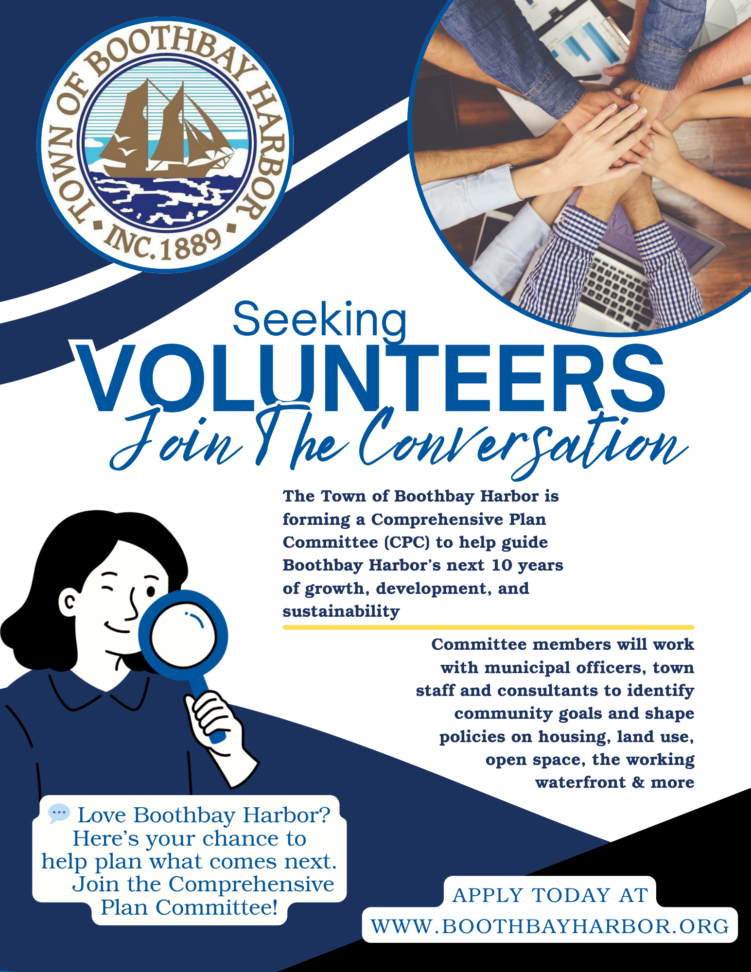 Boards And Committees All Board Of Appeals Board Of Selectmen Boothbay Harbor Sewer District Boothbay Region Water District Budget Committee Cemetery District Trustees BBH Planning Board Port Committee Refuse District School Committee Members BBH School District Trustees BBH Shellfish Committee Departments All Administration Animal Control Assessing/Taxes Code Enforcement EMA Finance And Human Resources Fire General Assistance Harbor Master Parking Police Public Works Shellfish Town Clerk Document Types All Agendas Dog Owners Employment General Information Hunting And Fishing Meeting Video Minutes Other Permits /Applications Shellfish Vital Statistics Search Title Search Complete Text Now showing 1-20 of 778 result(s)« 1 2 3 4 5 » Title Type Date Document Blasting Permit Application Permits /Applications 01/23/2026 View » Select Board Agenda 1-26-26 Agendas 01/19/2026 View » Town Officer Positions Available General Information 01/07/2026 View » Sewer District Trustee Position Available General Information 01/07/2026 View » Select Board Agenda 1-12-26 Agendas 01/05/2026 View » Select Board Agenda 12-22-25 Agendas 12/15/2025 View » Board of Selectmen Minutes 11-24-25 Minutes 12/09/2025 View » Deputy Harbor Master 12/08/2025 View » Public Works - Seasonal Sidewalk Plow Operator 12/08/2025 View » Public Works - Seasonal Plow Operator 12/08/2025 View » Select Board Agenda 12-8-25 Agendas 12/01/2025 View » RFP for Municipal Floats & Pilings Construction 11-26-25 11/26/2025 View » Board of Selectmen Minutes 11-10-25 Minutes 11/25/2025 View » Select Board Agenda 11-24-25 Agendas 11/17/2025 View » Select Board Agenda 11-10-25 Agendas 11/10/2025 View » Board of Selectmen Minutes 10-27-25 Minutes 11/10/2025 View » Solicitation for Comp. Plan Committee Members General Information 11/05/2025 View » Comprehensive Plan Committee Search 10/29/2025 View » Comprehensive Plan Committee Application Permits /Applications 10/29/2025 View » Select Board Agenda 10-27-25 Agendas 10/27/2025 View » « 1 2 3 4 5 »