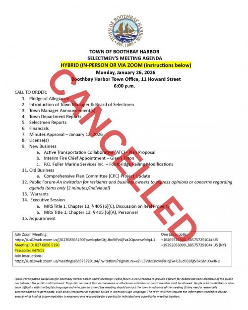 CANCELLED-Board of Selectmen Meeting 1-26-26
