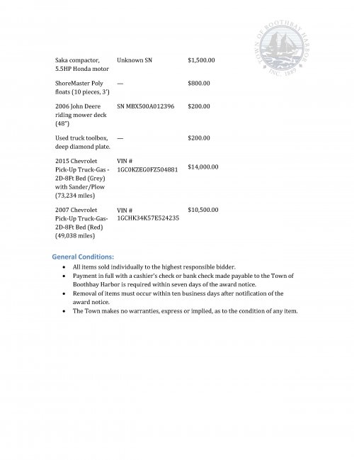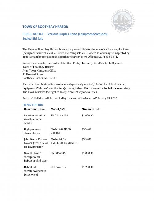 PUBLIC NOTICE - Various Surplus items (Equipment/Vehicles) - Sealed Bid Sale